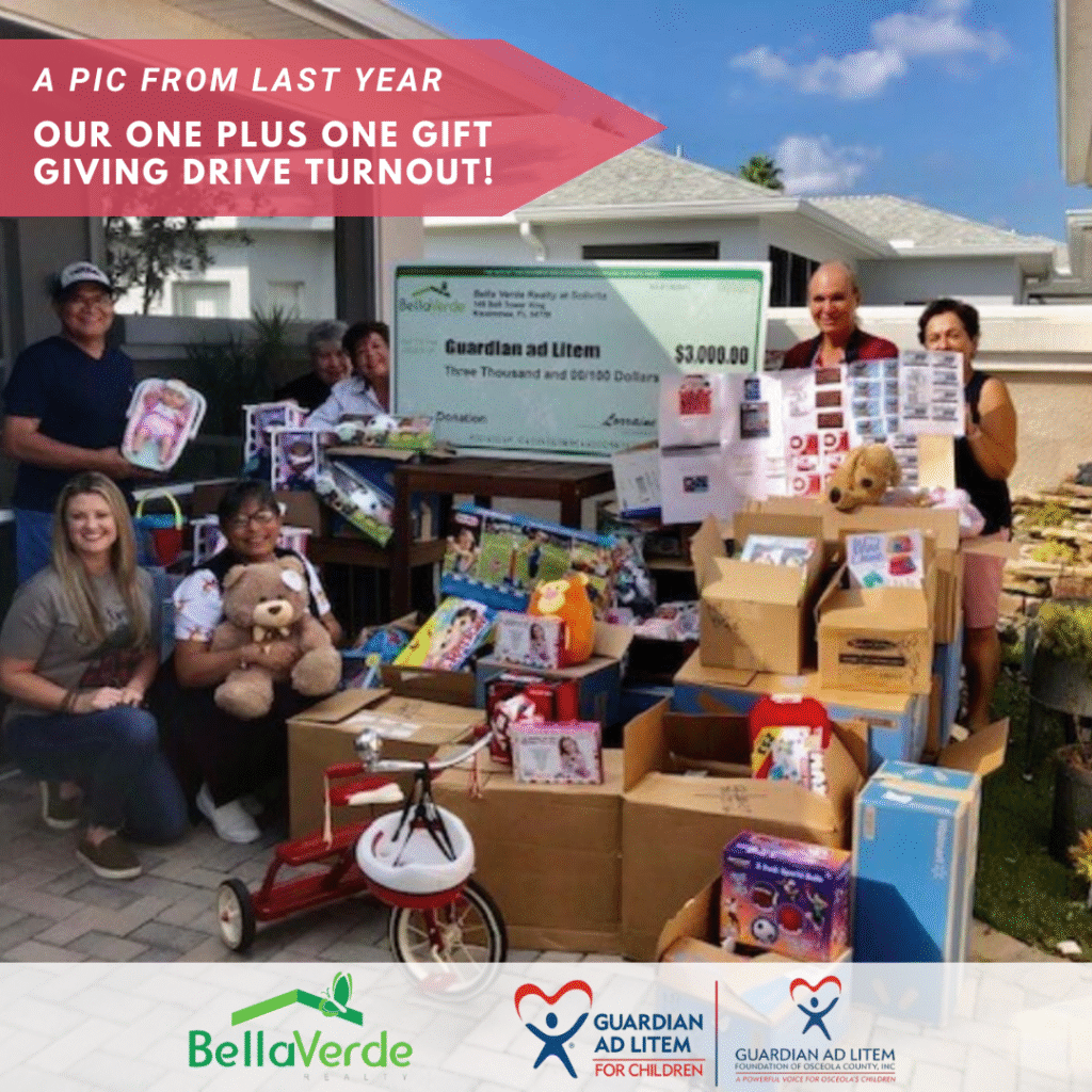Bella Verde Realty will match every gift or gift card donated. You give One Gift and the Children will get